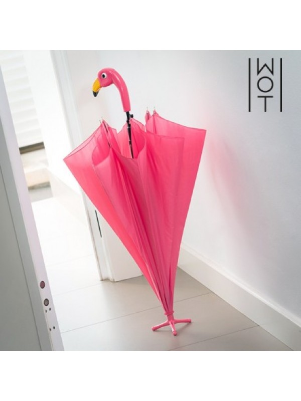 Skvelý dáždnik v originálnom dizajne s plameniakom, ktorý môže stáť na jednej nohe. Dáždnik je vyrobený z polyesteru, kovu a plastu a vďaka podstavcu sám stojí.