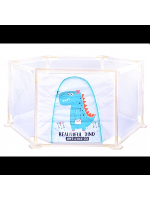 Konštrukcia ohrádky je vyrobená z plastových rúrok, ktoré sa dajú ľahko zložiť k sebe. Materiál s obrázkom dinosaura je príjemný na dotyk a ľahko sa čistí.