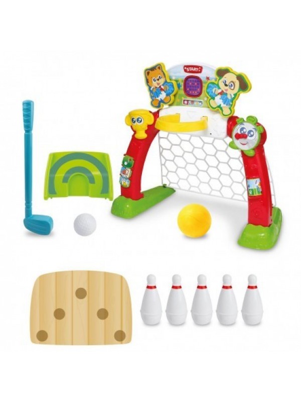 Miluje Vaše dieťa výzvy a športové cvičenia? Doprajte mu veľa zábavy a povzbuďte ho, aby vyzval svojich vrstevníkov do súťaže! Centrum športu 4v1 je dômyselná a multifunkčná športová hračka. Vďaka nej si každé dieťa môže vyskúšať až štyri rôzne disciplíny. Na vaše dieťa čakajú bowling, golf, futbal a basketbal. Každá z týchto hier podporuje fyzickú aktivitu a prirodzene zlepšuje motoriku. Centrum je možné používať doma ale aj vonku na záhrade.