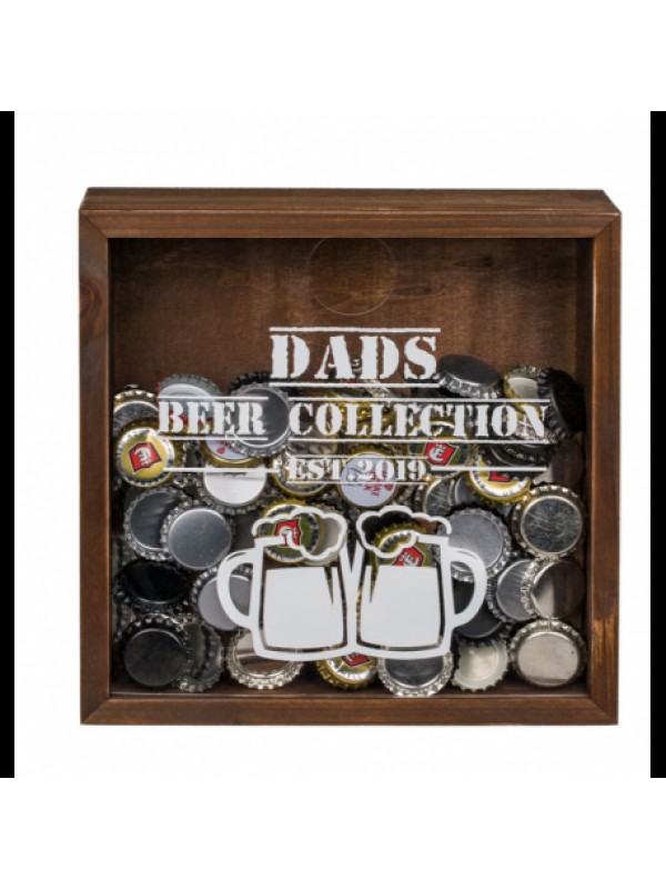 Dekoratívna skrinka na vrchnáky z pivových fliaš