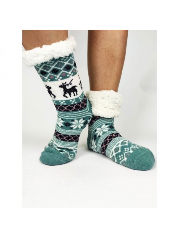 Termo dámske protišmykové ponožky 20-02 trblietavý sobík mentolové