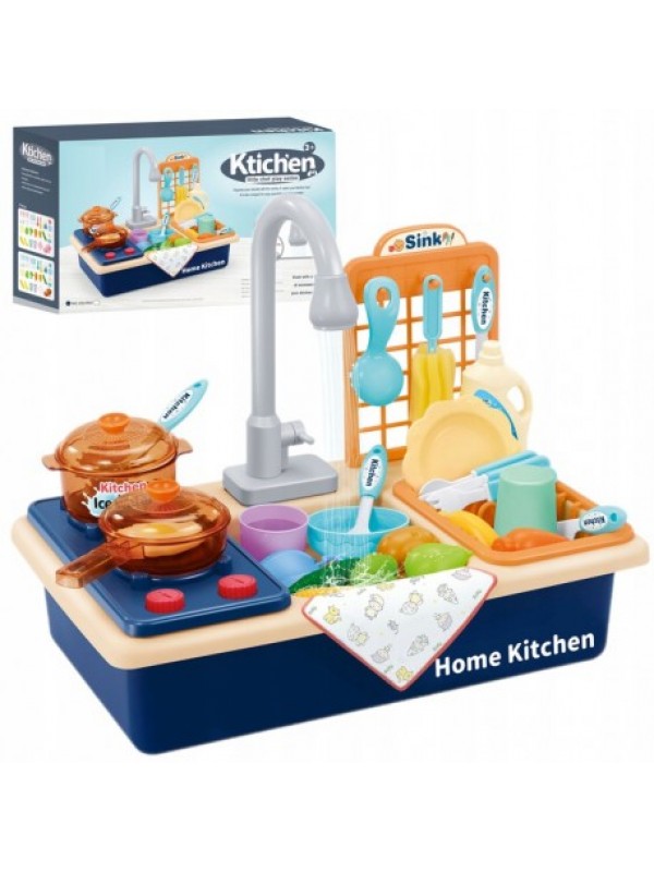 Trávi vaše dieťa veľa času s vami v kuchyni ? Skvelá kuchyňa, veľký drez s príslušenstvom, zaženie nudu a zamestná vaše dieťa na dlhý čas. Kuchynská súprava je veľmi realistická hračka, vďaka tomu, že z kohútika tečie skutočná voda, bude mať dieťa dojem, že vykonáva skutočné kuchynské činnosti. Nalejte vodu do nádoby tak, aby sa ponoril kohútik do vody. Kuchynský drez obsahuje horáky, hrnce a kuchynské doplnky. Umytý riad zaveste na háčiky alebo ho vložte na stojan na sušenie. Na umývadle je miesto na čistiace prostriedky alebo kefu. Po ukončení hrania vyprázdnite vodu z nádoby a osušte ju. Do nádoby je možne uložiť všetko príslušenstvo.