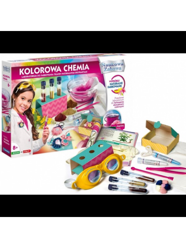 Sada na farbenie textilných látok s prírodnými extraktmi je vzdelávacia sada pre mladých chemikov. Pomocou prenosného laboratória sa dieťa môže naučiť niekoľko jednoduchých chemických pokusov, zafarbiť si vlastnú látku a vyrobiť si doplnky na kabelku alebo kľúče.