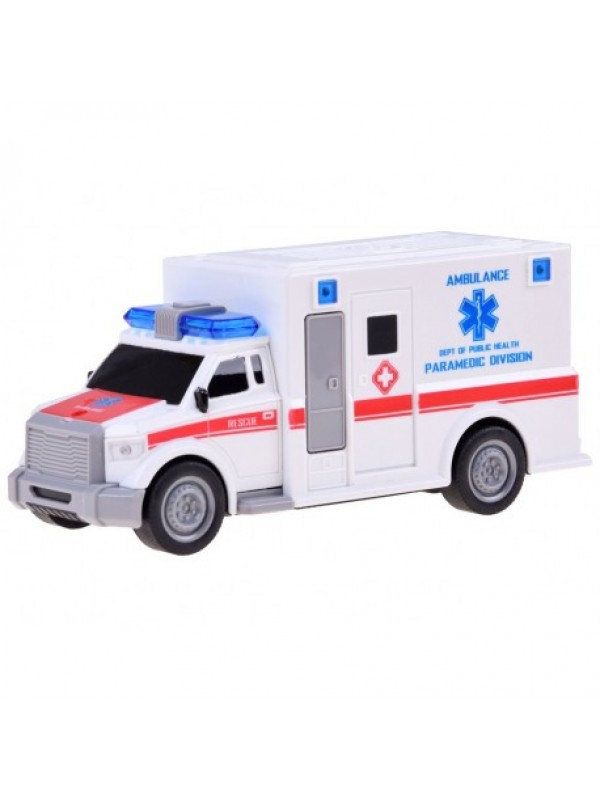 Sanitka je vyrobená výhradne z plastu a má zvukové a svetelné efekty. Biela farba s červenými a modrými prvkami zaisťuje viditeľnosť vozidla počas záchrannej akcie.