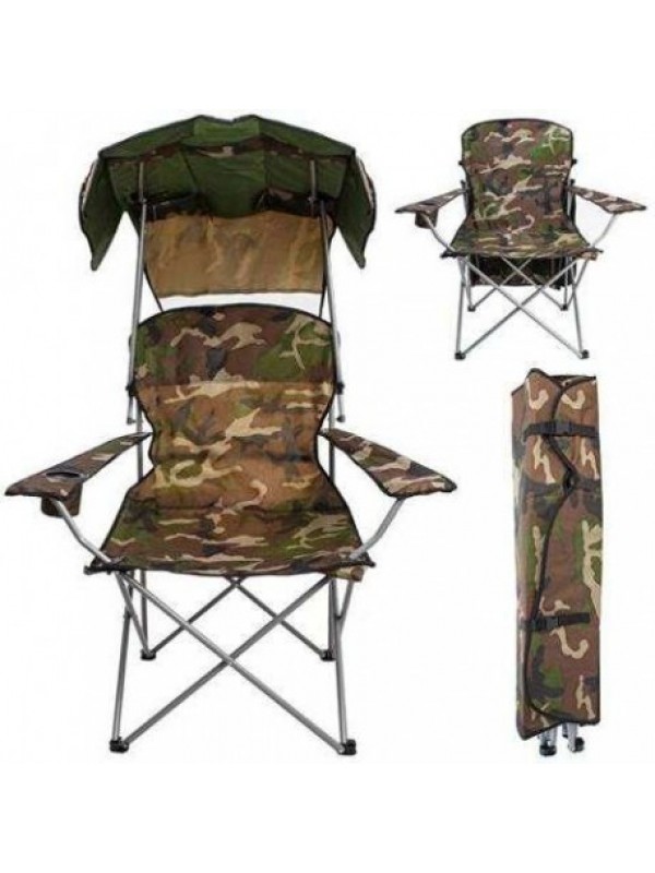 Skladacia maskáčová stolička so strieškou je ideálna na pláž, do záhrady alebo na kempovanie. Stolička je pohodlná, stabilná a vyrobená z kvalitných materiálov. Pohodlná stolička má špeciálne miesto na hrnček alebo fľašu s nápojom. Vďaka ergonomickému dizajnu stoličky sa vám aj po mnohých hodinách bude sedieť skvele. Stolička je mimoriadne stabilná, jej rám je vyrobený z odolných rúr a sedadlo je vyrobené z vystuženého materiálu. Vďaka všetkým týmto vlastnostiam dokáže stolička odolať záťaži až 120 kg.