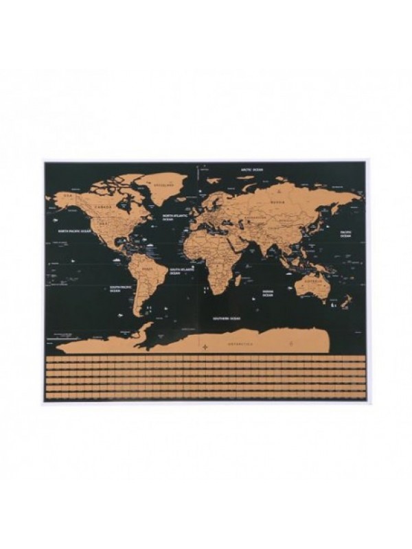 Okrem mapy uvedenej nižšie sú krajiny, v ktorých sa po poškriabaní objavia ich vlajky. Po návšteve každého z nich môžete poškriabať určené miesto, vďaka čomu sa na mape zobrazia uskutočnené cesty. Mapa sveta je tiež atraktívnym spôsobom, ako sa dieťa naučiť geografiu. Dieťa sa nielen oboznámi s distribúciou krajín, desiatkami väčších miest, ale aj s vlajkami. Mapa je zabalená do krásnej trubice, vďaka ktorej je gadget vhodný aj ako darček.