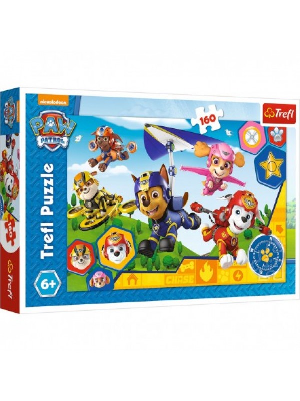Puzzle 160 prvkov s postavami animovaného filmu Labková Patrola Je to úžasná zábava pre najmenších fanúšikov tejto populárnej rozprávky. Teraz si môžu Vaše deti obrázok so svojimi obľúbenými hrdinami vyskladať sami. Po poskladaní vznikne obrázok s rozmermi 41x27,8 cm. Vysokú kvalitu, sýtosť farieb a hlavne bezpečnú zábavu zaisťuje kalandrovaný svetlo odrážajúci papier pokrytý ekologickými potravinárskymi farbami.