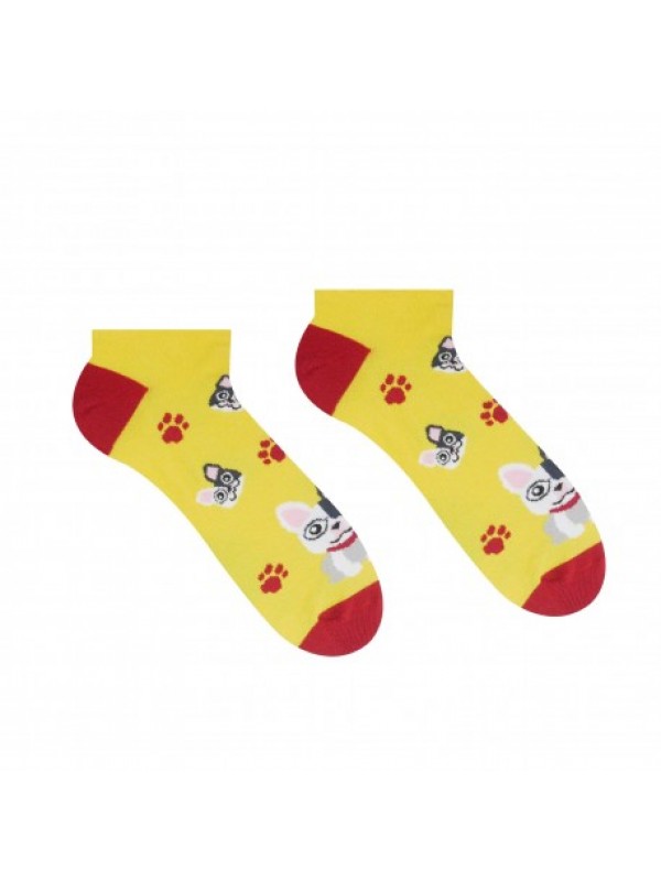 Veselé ponožky s obľúbeným vzorom francúzskeho buldočka. Toto plemeno miluje takmer každý a ty ním môžeš teraz robiť radosť každý deň. Vyber si svoju veľkosť veselých ponožiek ešte dnes a už zajtra ich môžeš mať doma.