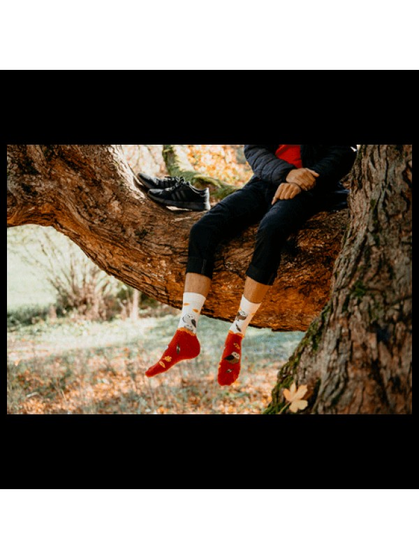 Veselé ponožky s krásnym vzorom Sovy. Sova symbolizuje múdrosť a ochranu, tak buď múdry ako ona a dopraj svojím nohám kvalitnú česanú bavlnu, pohodlie a vzdušnosť počas lesných prechádzok práve v tomto prírodnom prevedení s jesennými farbami. Veselé ponožky Sova oslovia všetkých milovníkov prírody a zvierat.